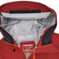 Die ALPEN JKT ist die perfekte Multifunktionsjacke mit vielen bemerkenswerten Details. Sie besteht aus einem sehr strapazierfähigen Drei-Lagen-Laminat, das sowohl wind- und wasserabweisend als auch atmungsaktiv ist. Natürlich gibt es versiegelte Nähte und wasserdichte, gewichtete Reißverschlüsse. Die Jacke hat eine in zwei Richtungen voll verstellbare Kapuze. Die Kapuze ist mit einem integrierten Recco-Rettungssystem ausgestattet. An der Innenseite des Kragens befinden sich gepolsterte Pads, die für einen bequemen Sitz sorgen und den Wärmeverlust minimieren.