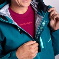 An den Seiten hat die Jacke Zwei-Wege-Reißverschlüsse, die bis zu den Achseln geöffnet werden können. Diese Reißverschlüsse ermöglichen eine optimale Feuchtigkeitsregulierung nach Ihren individuellen Bedürfnissen. Der Taillenumfang kann mit Knöpfen an der Innenseite des Saums und der Ärmelumfang mit Klettverschlüssen verstellt werden. Die Jacke eignet sich ideal als Außenschicht beim Skifahren oder Skilaufen, aber auch bei anderen Wintersportaktivitäten leistet sie gute Dienste. Die Jacke hat zwei Seitentaschen und eine Brusttasche, die alle mit einem Reißverschluss versehen sind. Natürlich gibt es auch reflektierende Elemente.
