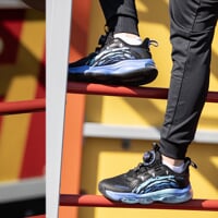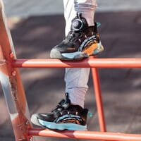 Kindersportschuhe JUNIOR TRAINING mit innovativer Befestigungsradtechnik mit Seil statt klassischer Schnürsenkel. Das Rad erleichtert das An- und Ausziehen, spart Zeit und Mühe und hält Ihre Füße an Ort und Stelle, wodurch das Problem loser Schnürsenkel beseitigt wird und eine bessere Stabilität und Unterstützung bei einer Vielzahl von sportlichen Aktivitäten gewährleistet wird. Dank des einzigartigen Designs des erhöhten, verstärkten Schlupfabsatzes sind die Schuhe so konzipiert, dass sie ohne Zuhilfenahme der Hände leicht anzuziehen sind.