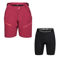 Ein Set aus Damen-Radhosen GENIA BIKE SHORTS und Shorts mit Radpolster BASICA SHORTS.