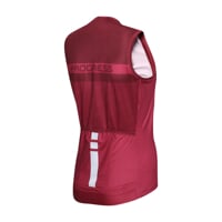 Women's fullzip sleeveless PEONY cycling jersey is made of breathable and quick-drying material. The elasticated cut is slightly fitted. The jersey is cropped at the front to perfectly follow your silhouette when cycling. The back consists of a mesh material that promotes ventilation. The full length jersey has a bone zipper backed by a flap, which is easy to unzip with one hand even while riding. The extended back is finished with a silicone-printed rubber hem to keep the jersey well in place. On the back you will find a classic three-way stripe, of course, reflective elements for better visibility.