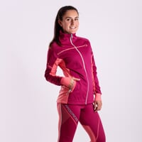 The women's softshell jacket SNOWCAT JKT is a great choice for all lovers of cross-country skiing, but due to its characteristics you can definitely use it for other sports activities in cold weather, from hiking to ski touring. The material provides excellent thermal insulation properties, reliably protecting the body from the cold. The side panel, the centre back and the inner part of the sleeve are made up of a stretchy and breathable material, which provides greater flexibility and better ventilation in exposed areas. The jacket has elasticated hems at the sleeve ends, a drawcord hem and two zipped pockets. The silicone reflective elements guarantee greater visibility and therefore greater safety even if you are playing sports in low light conditions.