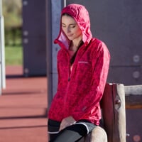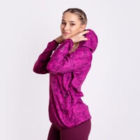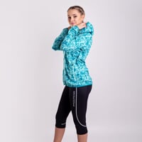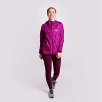 The VALEDA women's full-zip hooded jacket is a lightweight, breathable windbreaker that is treated with a durable Teflon DWR treatment so it can easily withstand lighter rain. The jacket can be folded into a small pouch that is inserted in the side pocket of the jacket. There is a clever runner's closure on the chest - a stud that doesn't allow the unzipped jacket to slip off the shoulders even when running fast. The jacket has two zipped side pockets and reflective elements for added safety.