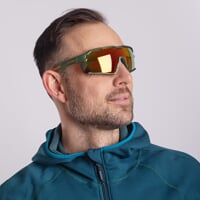 Der gummierte Nasensteg und die Bügelenden garantieren Stabilität und sicheren Halt der Brille, auch bei dynamischen Bewegungen. Die Gläser sind mit einer Revo-Beschichtung versehen, die den Augenschutz vor starker Sonneneinstrahlung erhöht und zu mehr Sehkomfort beim Sport beiträgt.