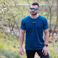 Men's sports shirt ENERGETIC is made of soft, very pleasant to the touch, lightweight material, enriched with a technical component Graphene. It is an innovation that revolutionises textile materials. The material contains carbon atoms arranged in a hexagonal pattern that give it extraordinary strength, provide optimal heat transport, ideal thermoregulation, UV resistance, prevent the growth of bacteria and body odour and even repel mites. Thanks to its composition, it also ensures fast drying. The comfortable, close-fitting cut fits perfectly and offers a modern look. The T-shirt has versatile use in a wide range of all sports activities, especially for running or fitness.