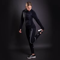 The UNIA women's running leggings are made of breathable, quick-drying, finely combed material that holds its shape well and does not show through. The leggings adapt perfectly to the figure. They are sewn with flat seams, which together with the wider elasticated waistband ensures optimum wearing comfort. There is a sewn-in pocket at the waist to store small items, and a pocket for your mobile phone can be found on the right thigh. The leggings have reflective strips sewn into the seams along the entire length of the legs, which, together with other reflective elements, guarantee greater visibility and therefore greater safety even if you are running in low-light conditions.